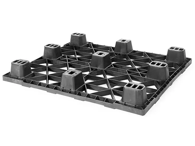 Pallet Plástico Eko 100×120 Encaixável, 4 entradas livres, suporta 2 500 kg estático e 1 200 kg dinâmico. Leve (9 kg), lavável, reciclável e com design que economiza 50 % de espaço.