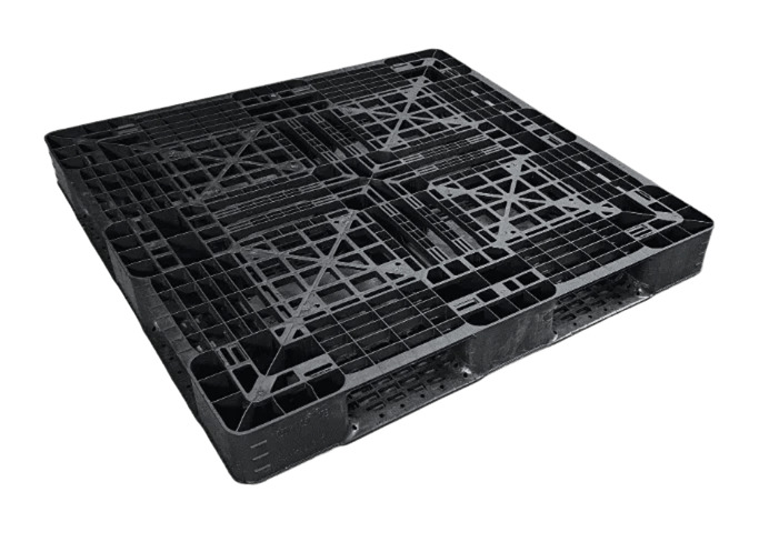 As 4 entradas travadas e os 3 runners fixos proporcionam estabilidade para estantes e empilhadeiras. É livre de manutenção, resistente a agentes químicos, fungos e bactérias e completamente reciclável. A cor preta (ou verde) auxilia na identificação de lotes ou setores.