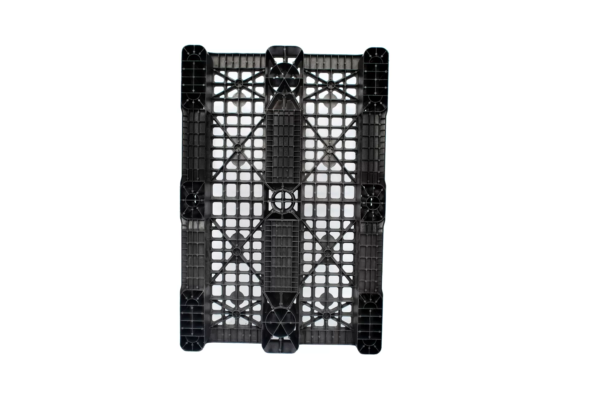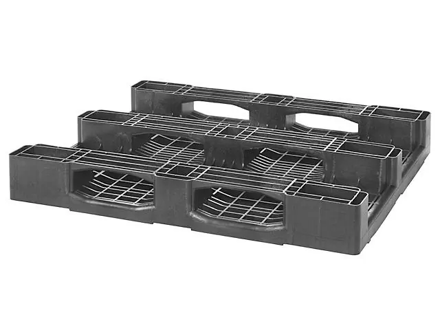 Pallet Plástico 80x120x15 Euro, com 3 longarinas, 4 entradas e capacidade de 3500 kg estático/1500 kg dinâmico/800 kg em rack0. Fabricado em PP, leve (10 kg), lavável e reciclável…